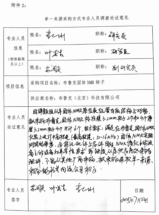 中国科研实验室精密测量科学与技术创新研究院关于向布鲁克(北京)科技有限公司采购固体转子单一来源采购公示